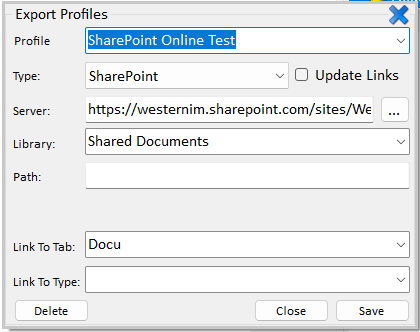 Export Profiles define how data is transferred from AgileIM to other systems or locations, such as Documentum, Perceptive, SharePoint, OneDrive, or shared drives.